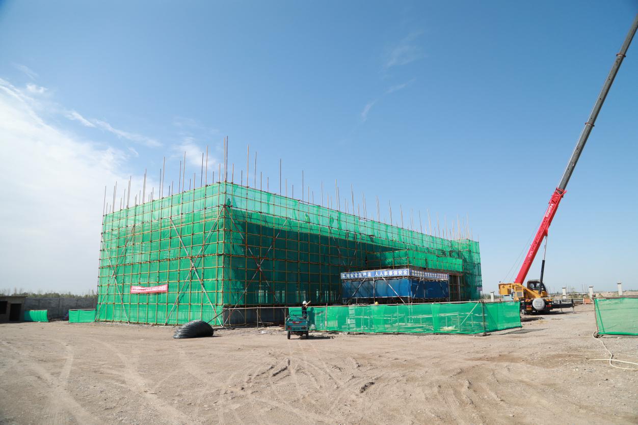 位于一团金银川镇的新疆金棉仓储物流有限公司40万吨棉花仓储一期项目施工现场。郑亮 摄