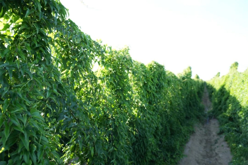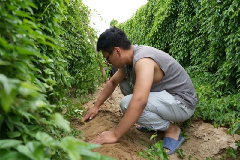 7月16日,记者走进柳毛湾镇沙门子新村千亩山药种植基地,碧绿葱翠的山药藤蔓爬满了支架,长势喜人,远远望去绿油油的一片。