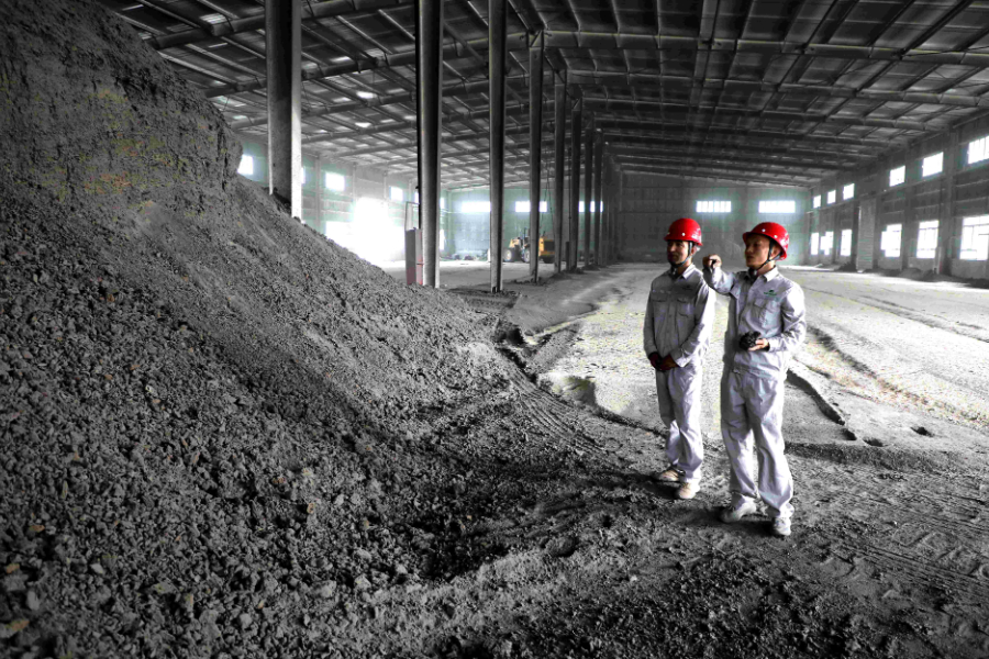 工作人员正在查看制作粉煤灰的炉渣。林国强摄