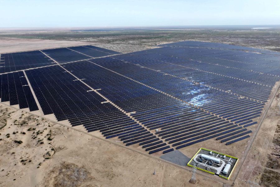 “新疆阿拉尔是作为我们基地项目的首选地区,这个项目主要考虑到背靠塔克拉玛干沙漠,光照资源非常好,整体的项目收益会非常好。从低碳转型、清洁能源的角度来说,在沙漠周边的项目起到防风固沙作用,我们在宁夏、内蒙古的一些光伏项目覆盖面下面都长出了草,对于低碳转型、防风固沙和综合环境来说,可以达到一个非常好的效果。”该项目负责人王淞霖说。