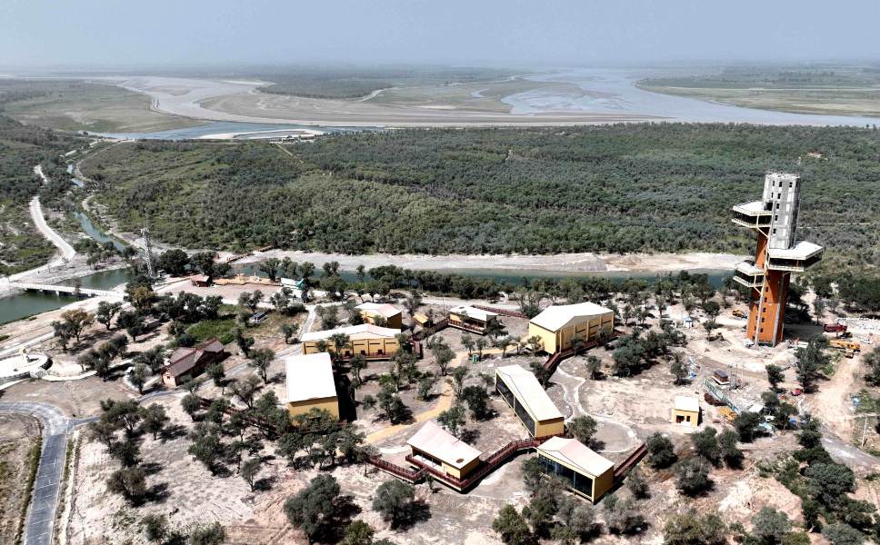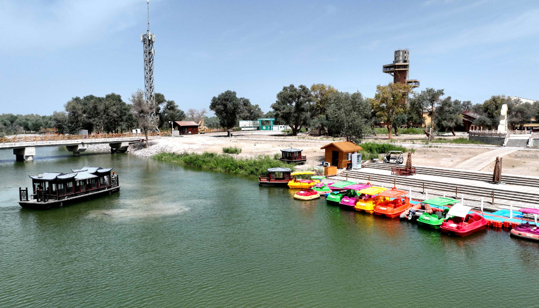塔河源景区位于十六团新开岭镇十六连。作为阿拉尔市“百里画廊”的起点,从2022年开始,该团镇投资近2亿元,实施塔河源提质增效基础设施建设项目,对景区基础设施进行优化提升。目前,游客服务中心、生态停车场、塔河古镇、塔河文化馆等单体设施已建成,景区标志性建筑观光塔——塔河之眼也进入收尾阶段。项目全部完成后,将以塔河源为依托,重点打造以胡杨景观、塔河风光、水上乐园等旅游内容为主,集观光、休闲、度假于一体的多元化旅游景区。