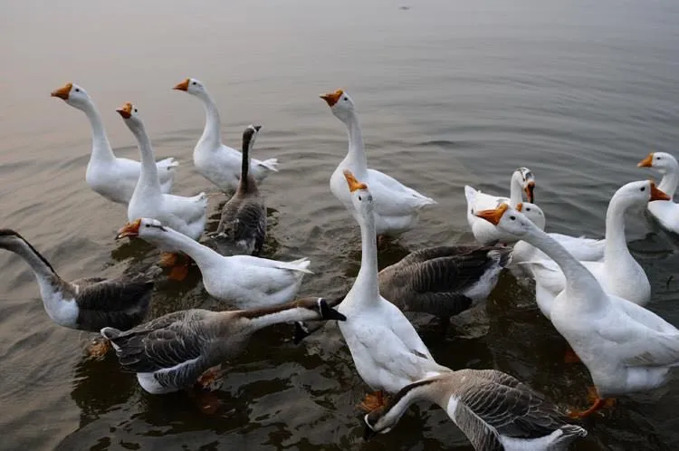 野鸭、鸬鹚、沙鸥成群结队