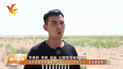 莎车县恰热克镇库热瓦特村村民努热艾力·麦麦提依明:现在这一片片的都是树,苹果树,枣树,胡杨,红柳等等啥树都有,看着就像一片绿色长城,保护着我们美丽的家园。