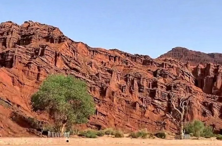 微风带着雪的清凉,从托木尔峰的山顶划过,吹向被誉为“峡谷之王”的“库都鲁克大峡谷”,穿梭在石壁间,抚摸着那被岁月雕琢的红岩,徘徊在“胡杨双雄”的身边。守护在这里的“胡杨双雄”,孤独的生长在这峡谷之中,历经千年,其中一棵依然枝繁叶茂,而另一棵已形态沧桑只剩枝杈,但依然傲然屹立,相互守望,它们向人们诉说着“生而千年不死,死而千年不倒,倒而千年不朽”的传奇,让人们对生命的顽强与坚韧产生深深的敬畏。