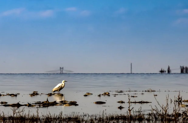 千泉湖湖水清净澄澈,湖面波光粼粼、芦苇依依,不时有天鹅、灰鹤等珍禽从一望无际的芦苇荡里腾空而起,碧水中鱼儿畅游其间,俨然一幅飞禽翔集、锦鳞游泳的如诗画卷。