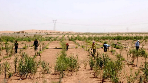 莎车县以防沙治沙为主攻方向,通过深入挖掘沙地资源生态复合功能,积极探索“沙地+”模式,加强治沙、治水全要素协调和管理。县域生态环境保护稳中有升,土地沙化趋势得到有效控制,东西两侧106公里的生态安全屏障基本形成。面对防沙治沙的艰巨任务,莎车县恰热克镇更是运用科学治沙,为沙漠披上了绿色的外衣。