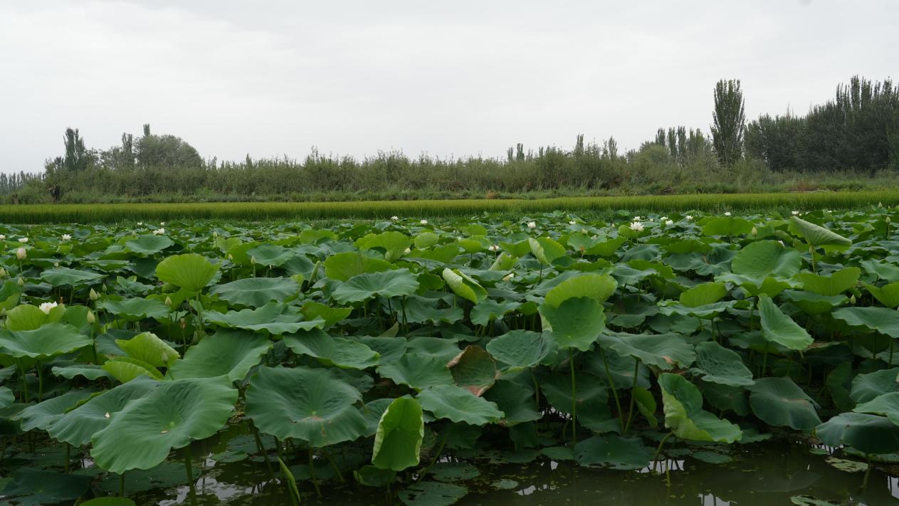 温宿县托乎拉乡稻园村的满池荷花。李哲清 摄