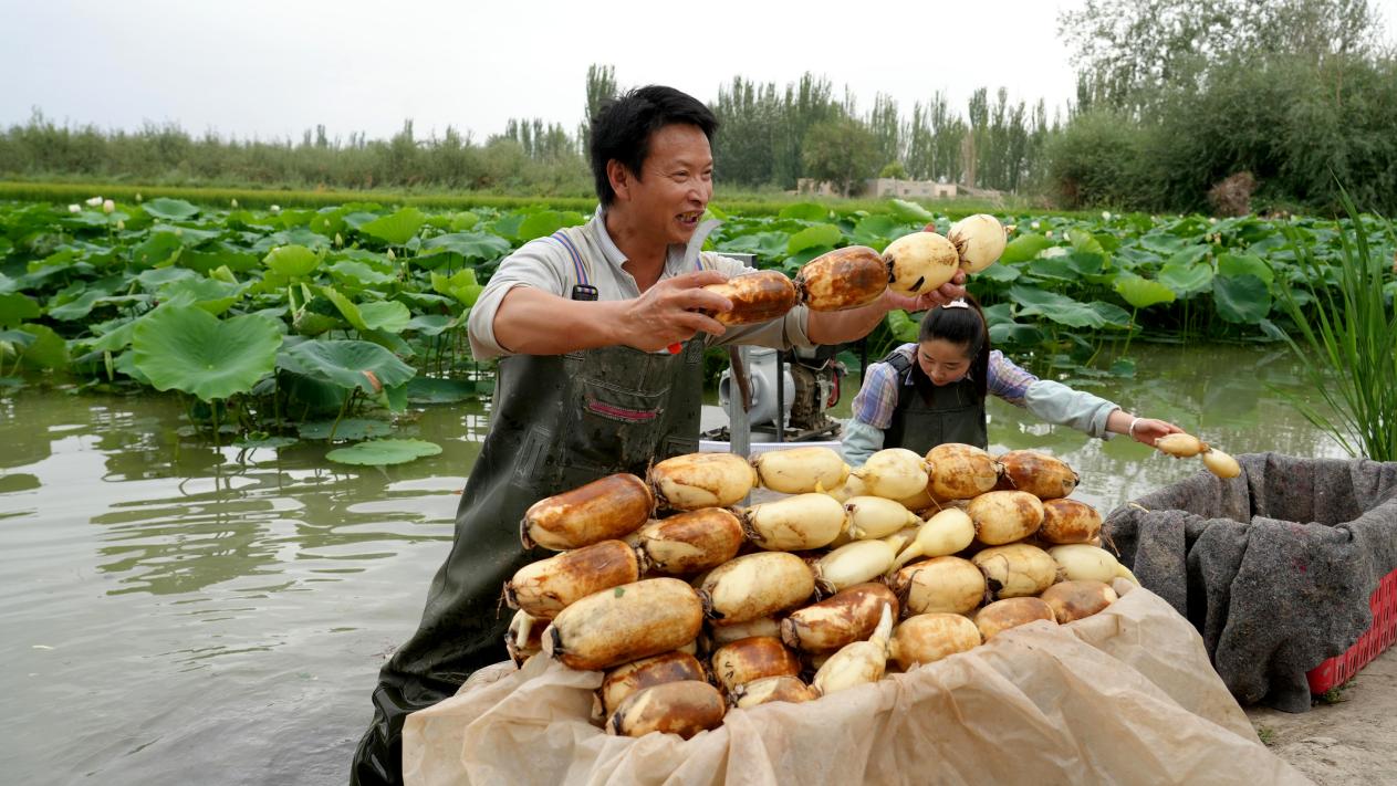 彭刚补充道:“这种品质在市场上非常受客户欢迎。清洗后莲藕变得非常洁白。无论是炒着吃还是炖着吃,都非常美味,能够满足各个年龄段的需求。在温宿、阿克苏市场上,我们家的莲藕占据了很大一部分市场份额。”