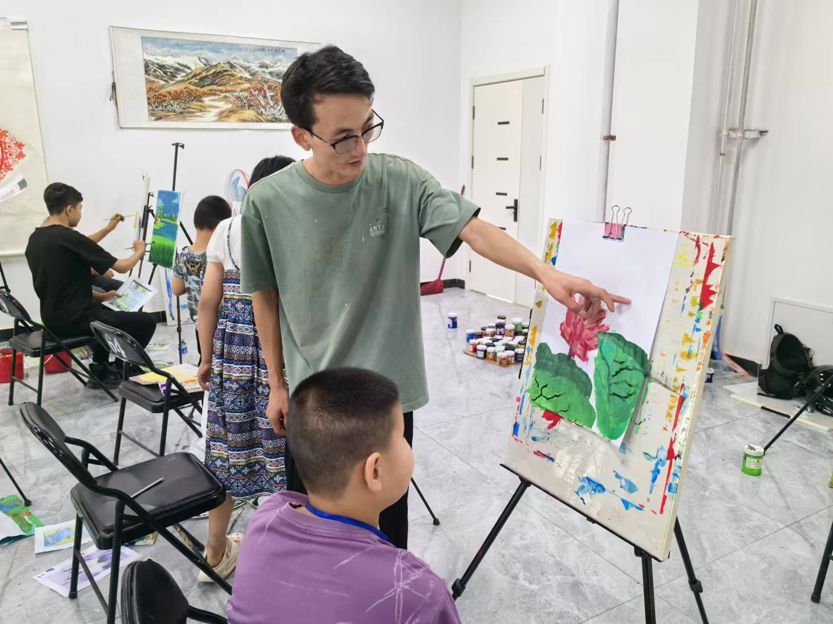 据了解,此次培训班7月12日开始线下报名,7月15日正式开班。目前共开设舞蹈、绘画、书法、吉他等4门类课程,分两期进行,每期培训15天,聘请了专业老师进行教授,以满足青少年儿童的精神文化需求。