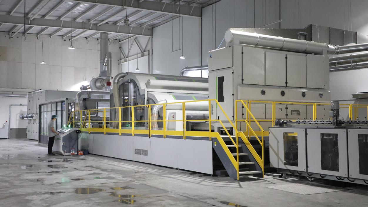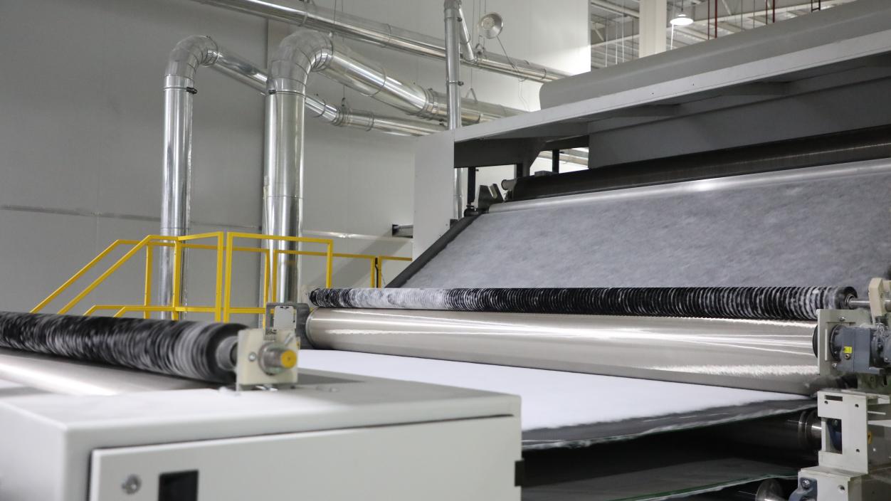 水刺无纺布生产线正在进行功能性产业用纺织品作业。乔建林 摄