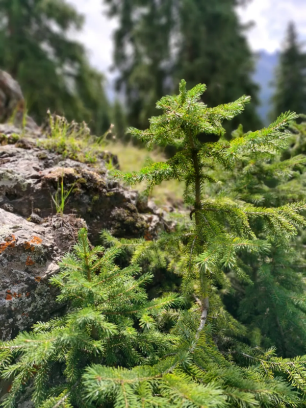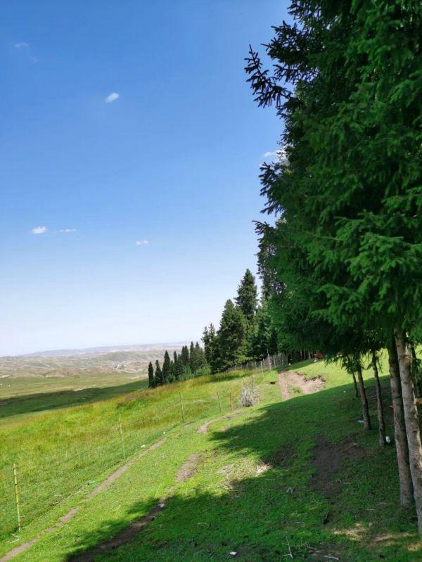 云中牧场鹿角湾,云杉耸立、绿草如茵,天山冰川积雪融化,加夹着汩汩山泉,汇聚成潺潺溪流,沿着河谷奔流而下。