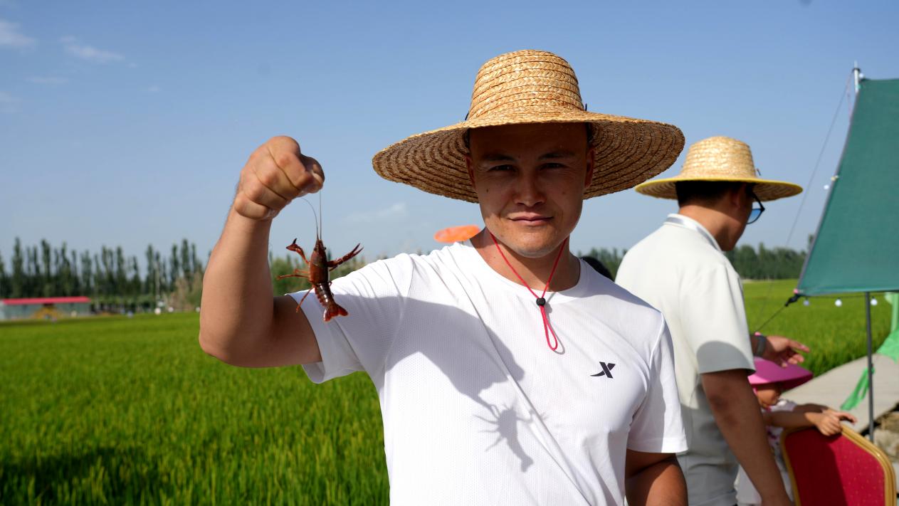 温宿县委政法委驻托万克苏布拉克村工作队队长、第一书记吕进龙介绍:“我们依托本地优质的水资源,与九良品生态农业科技公司合作,在稻田中精心培育小龙虾。此次举办的小龙虾垂钓活动深受游客喜爱,村委会广场附近还设置了小龙虾加工点和村民自主经营的烤肉摊以及其他农副产品的销售点,为至少10户村民创造了增收机会,有力推动了村集体经济的发展。”