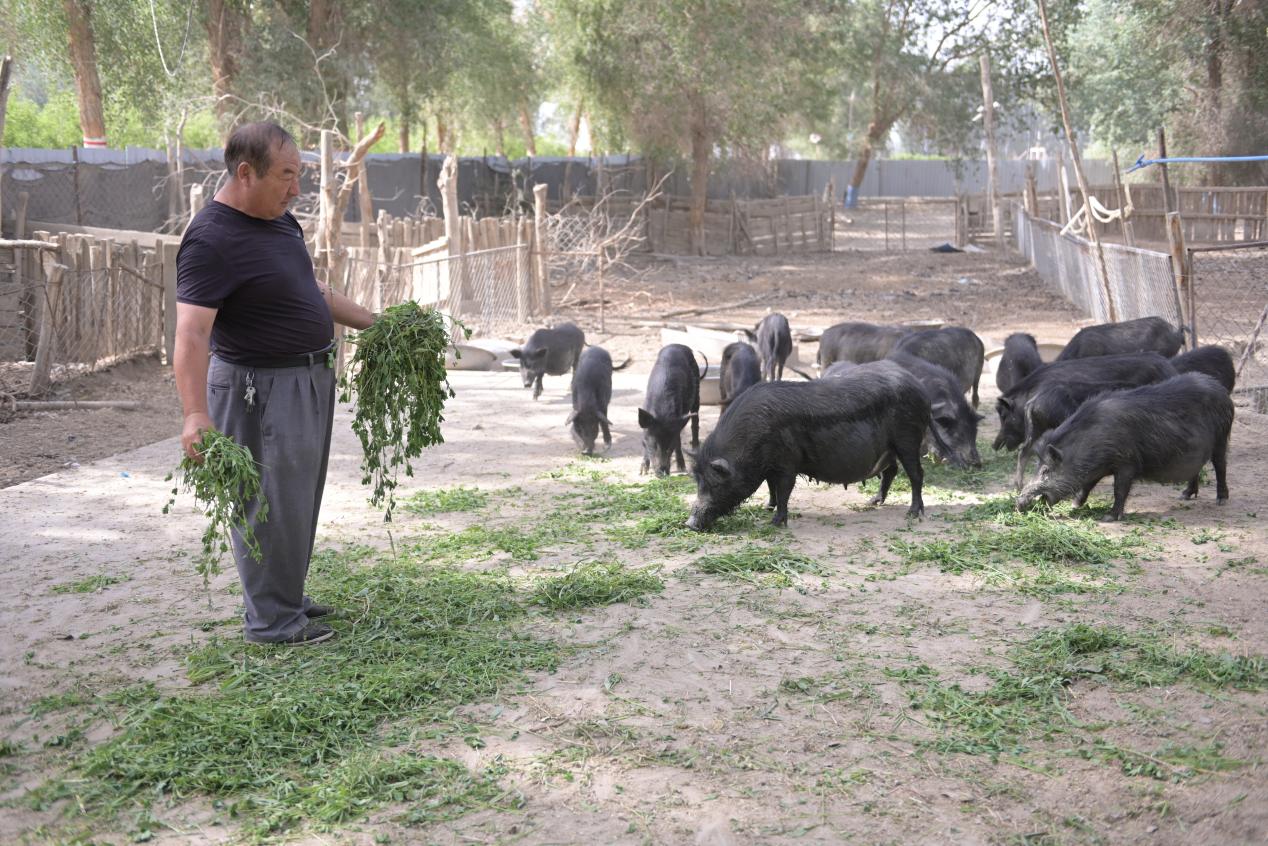 王春进说:“藏香猪吃的是我们自己种植的苞米、苜蓿、蒲公英和菊苣草等牧草,经过林下散养,不仅保证了藏香猪的肉质鲜美,也提升了经济效益。”