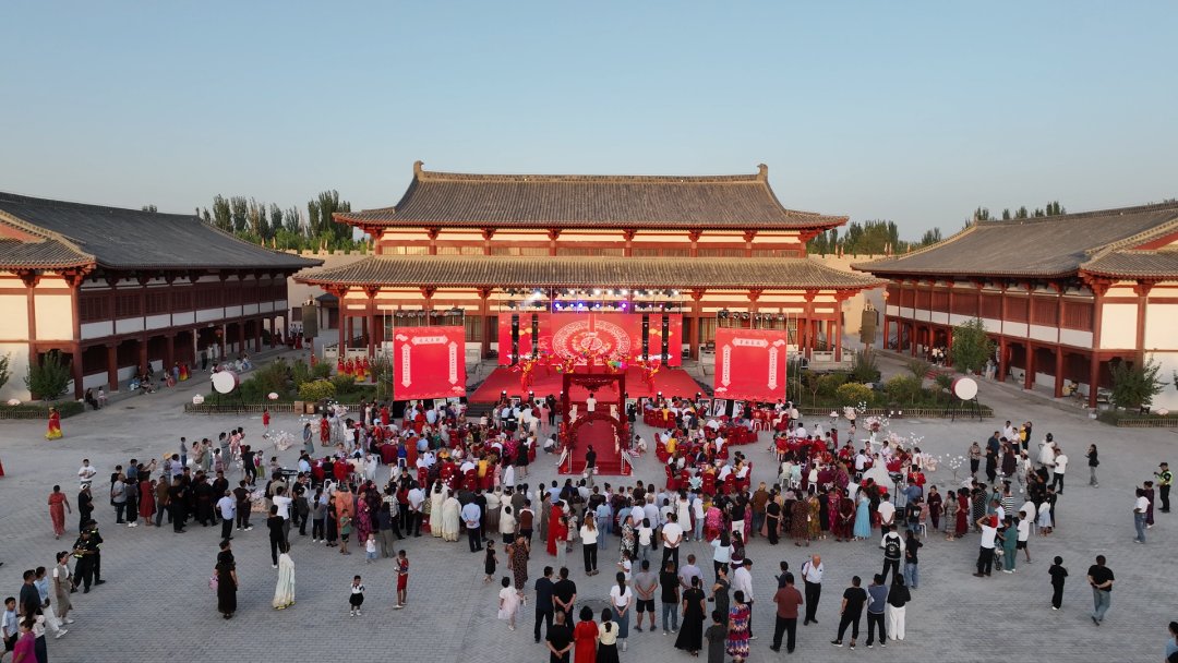 8月9日晚,新和县唐安西都护府文化园里格外温馨热闹,以“我们的节日·七夕”为主题的“相亲相爱迎七夕家风家教共传承”集体婚礼在这里隆重举行。
