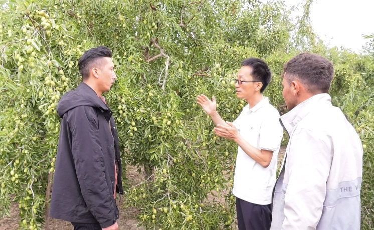 麦盖提县央塔克乡人民政府副乡长寇玉龙说道:“在红枣果实膨大期的关键阶段,央塔克乡精心部署,特别安排了一批经验丰富的技术人员,深入田间地头,悉心指导群众开展红枣果实膨大期管理工作。同时,针对枣树枝条繁茂、果枝交错的特点,央塔克乡还迅速行动,积极组织精干力量,全面开展撑枝加固工作,避免红枣树枝损坏,为今年红枣的丰收和质量提升保驾护航。”