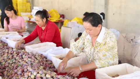 “我们从2014年建园,现在已经10年了,这个新梅在现在的水果当中算是高品质水果,产量还可以,我们今年新梅采摘是分两个期,销往北京、上海、南京,现在正在进行采摘,可能产量是150到170吨左右。”敬守明说。