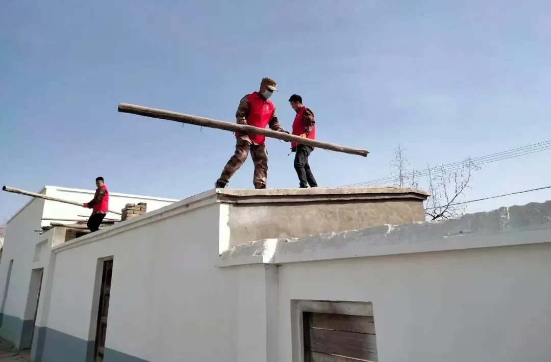二十二团七连“两委”委员帮助连队老人修缮屋顶。(资料图)