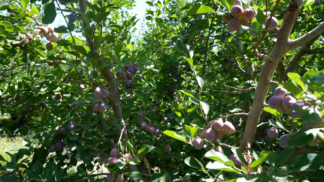 8月12日,走进娄耀华的果园,满树的西梅犹如紫玛瑙般挂满枝头,果香四溢,丰收的景象令人陶醉。工人们穿梭在果园中,忙着采摘、搬运、分拣、装箱,准备将这些美味的果实远销至广州、郑州等繁华都市。正在自家西梅园里忙着采摘的娄耀华看着成熟的西梅,脸上挂满了丰收的喜悦:“我家种有西梅40亩,有法兰西、蓝梅和大红西梅等品种,其中法兰西品种亩产大概一吨多,价格约为18元/斤,红西梅和蓝莓产量也很高。今年西梅纯收入在30万元左右。”