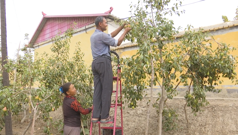 麦盖提县希依提墩乡艾力克坎土曼村村民麦热耶姆·吾斯曼说道:“以前我们家的林带一直空着,十分浪费,2019年工作队带领我们种植果树,第二年就见效益了。去年我家的梨卖了700元,今年卖了2000多元,后期还能卖1000多元。”