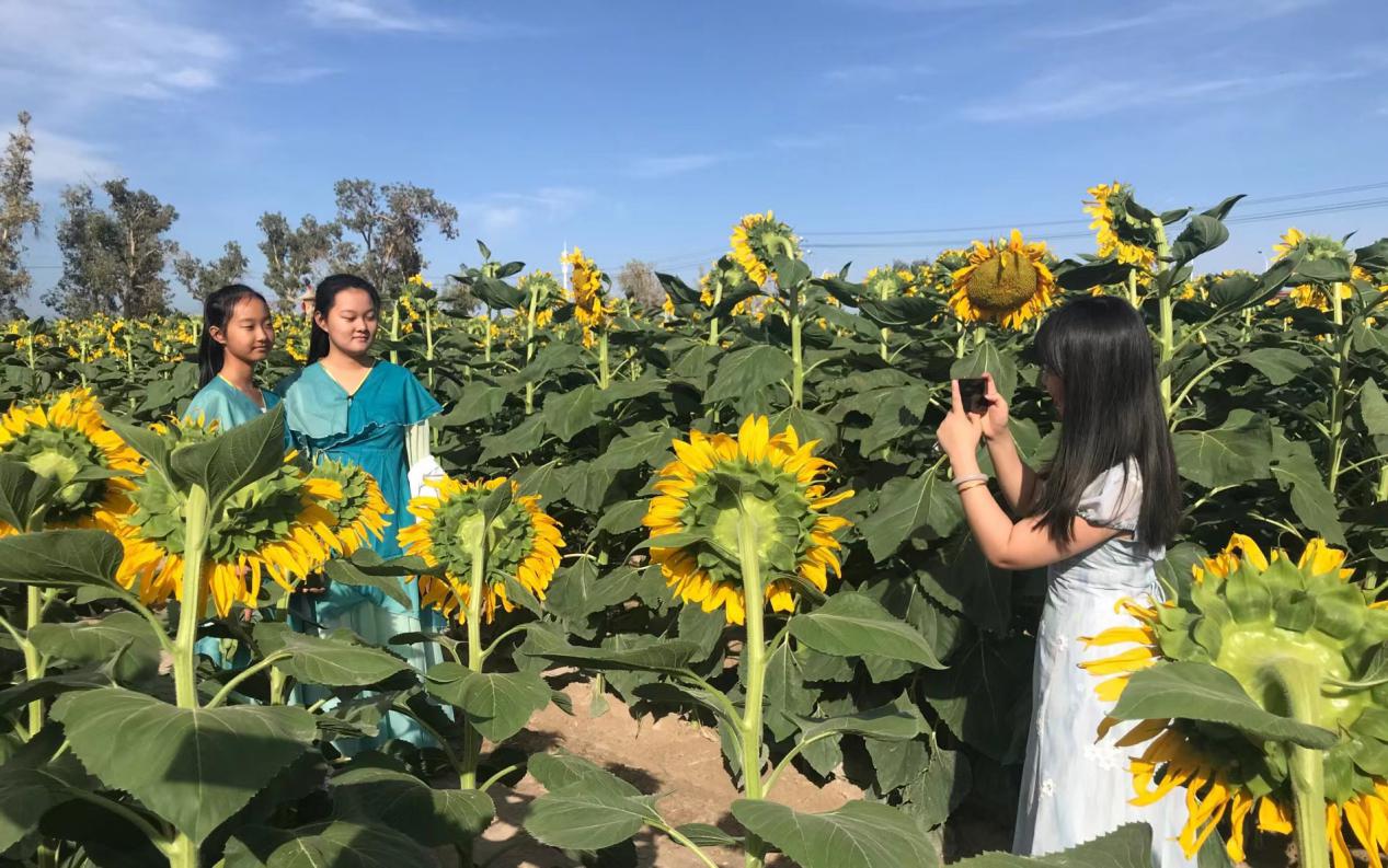 “向日葵花海太美了!我们玩了整整一天,拍了上百张照片!”来自阿拉尔的游客孔凡瑞开心地说。