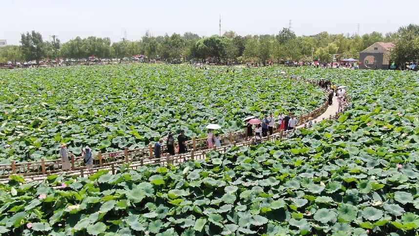 十六团新开岭镇荷花公园迎来众多游客。资料图