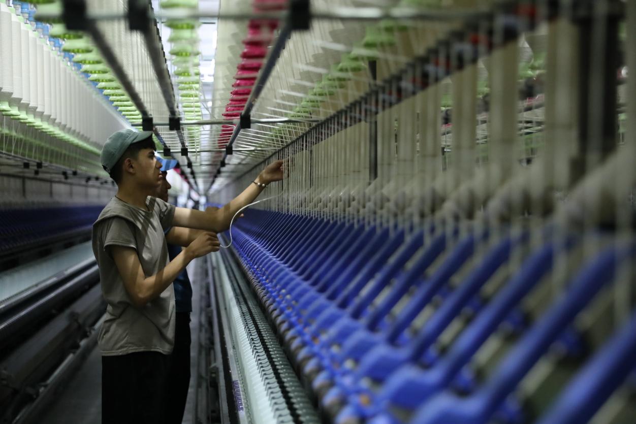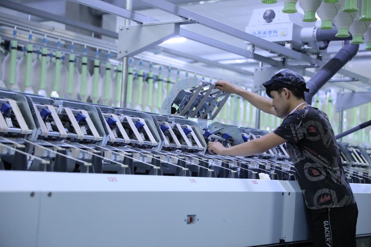 这两天,在新疆阿拉尔市阿新纺织有限公司(以下简称阿新纺织)生产车间内,机声隆隆,在纺织工人的操作下,一台台智能化纺纱设备正在高速运转,加紧赶制订单。