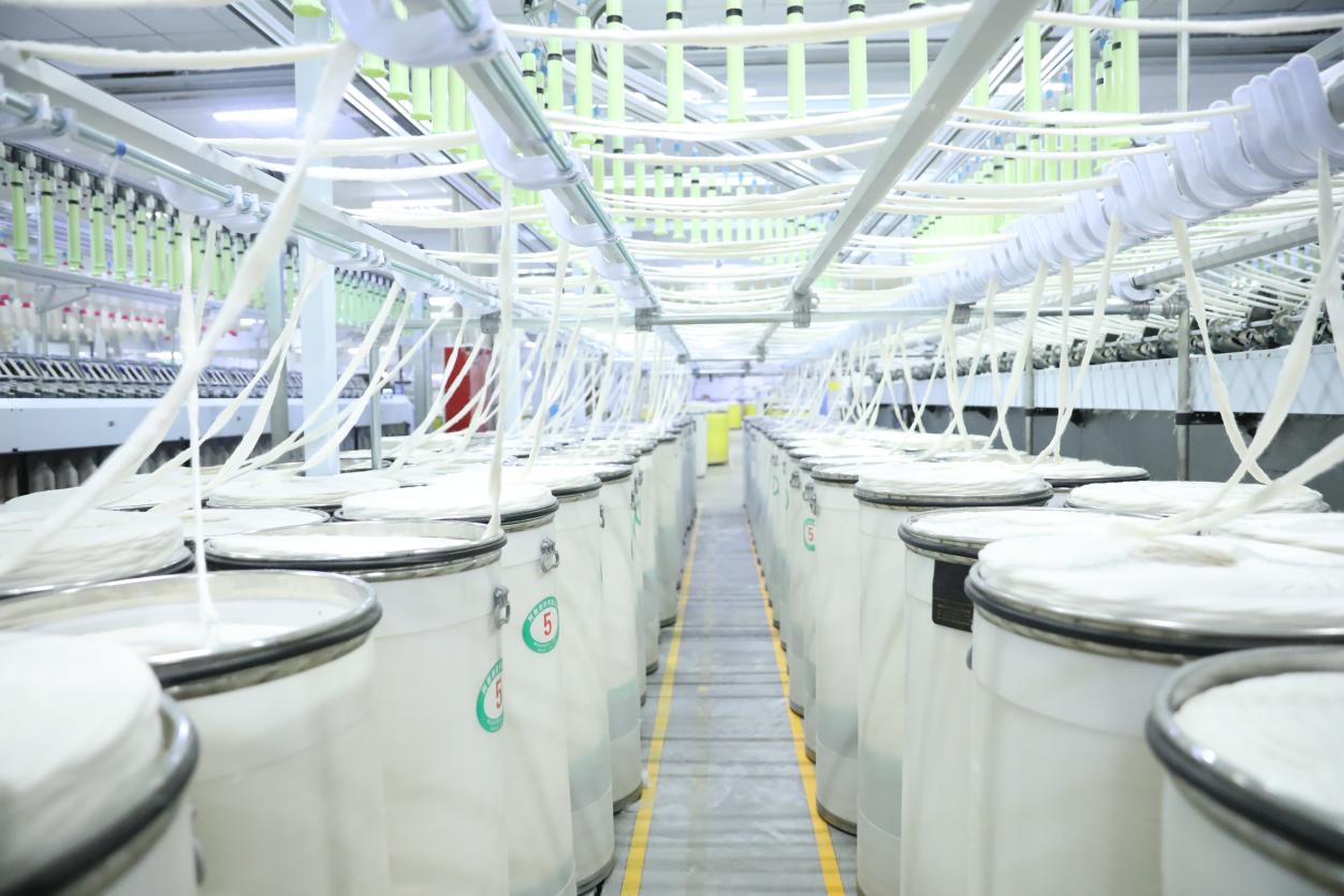 阿新纺织自2022年3月落地阿拉尔市以来,引进配置先进的生产工艺和设备,致力于用当地的优质棉花生产出一流的纱线产品,打造出一流纱线品牌。目前,公司已完成14400吨棉纱生产任务,为完成全年既定生产目标任务打下了坚实基础。