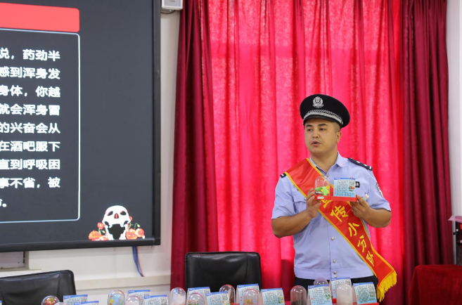 “同学们请看,我手中这个奶茶包是饮料吗?这是‘第三代新型毒品’不法分子会把K粉、冰毒的成分混进去,只要你喝了,就会神志不清。”课堂上,克孜勒派出所宣传民警通过播放禁毒宣传短视频及毒品样本展示,向同学们详细介绍了毒品的种类、特征和危害。让同学们深刻认识到毒品可能就隐藏在身边,稍有不慎就会陷入毒品的陷阱。