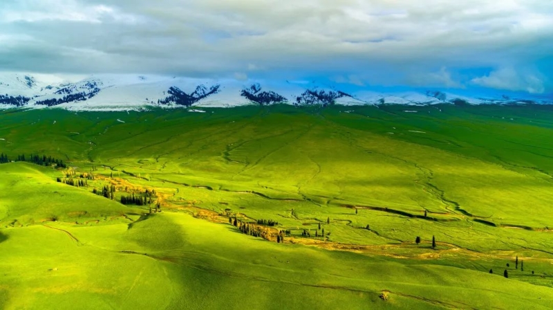 新疆的自然、共融、共生之美,承载了我们对诗和远方全部的想象。“所幸宇宙垂青这个星球,留给了人类一个地方,叫新疆”“行至新疆,可抵岁月漫长”。是的,新疆是我的,亦是你的。天山之巅,雪松相依,根系交错,恰似新疆各族儿女心手相连,情深意长。天山南北,一幅幅和谐共生、美美与共的壮丽画卷徐徐展开,在这画卷的深处,涌动着中华民族古今一脉、绵延不绝的磅礴力量。(作者:蔡金花)