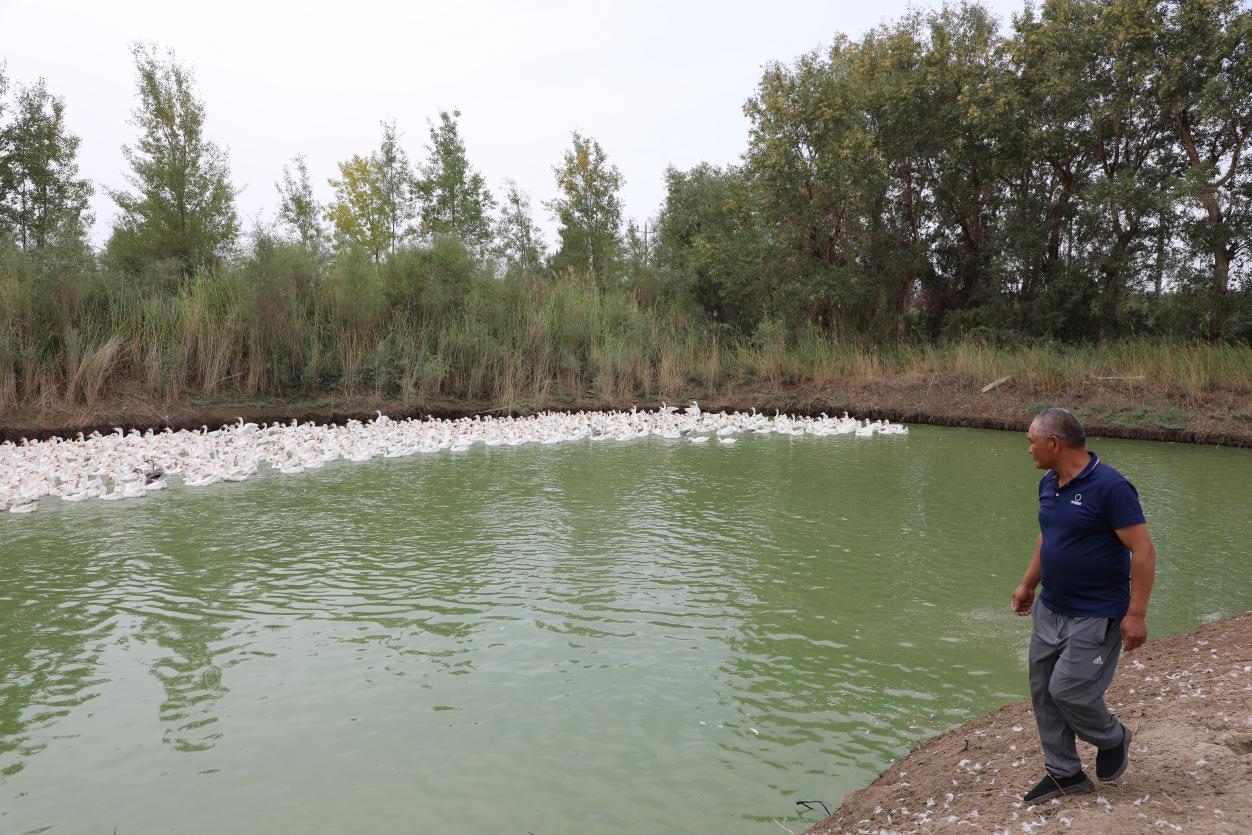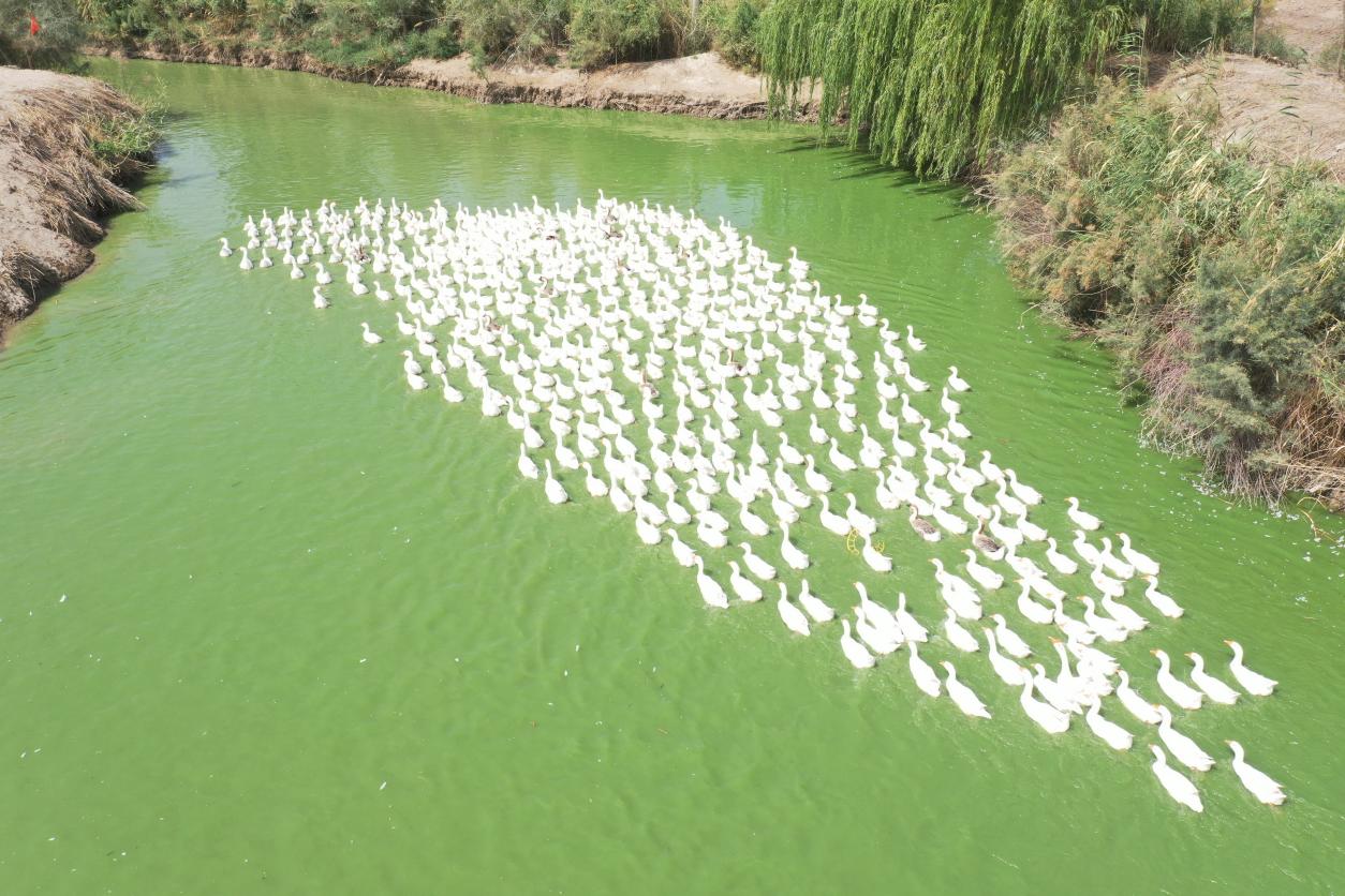 “今年养鹅大概能增收5万多元,我挺知足的……”8月23日,新疆兵团第一师阿拉尔市三团甘泉镇十二连一片池塘前,职工邵新军看着自己养殖的“三花鹅”高兴地说。