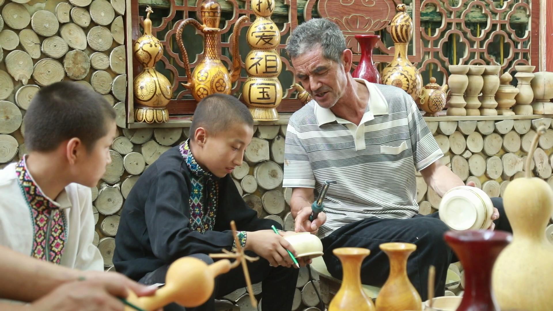 “葫芦”,取其谐音“福禄”,代表着吉祥幸福。葫芦烙画不仅是一种传统的工艺美术品,更是国家级非物质文化遗产。在麦盖提县,便有两名在葫芦上烙画的民间艺人,他们潜心创作葫芦烙画多年,在当地颇有名气。