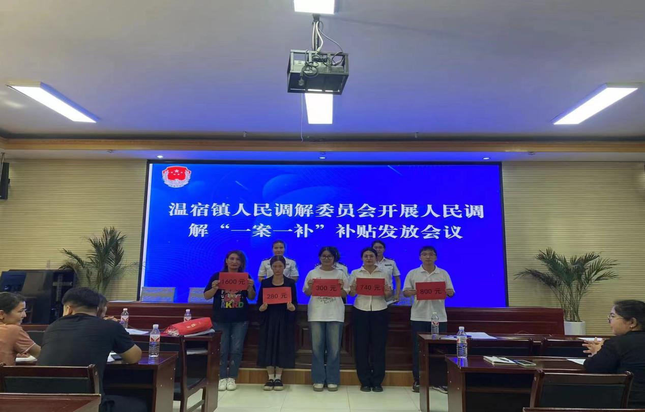 温宿镇人民调解委员会开展调解“一案一补”补贴发放会。阿孜古丽·艾买提 摄