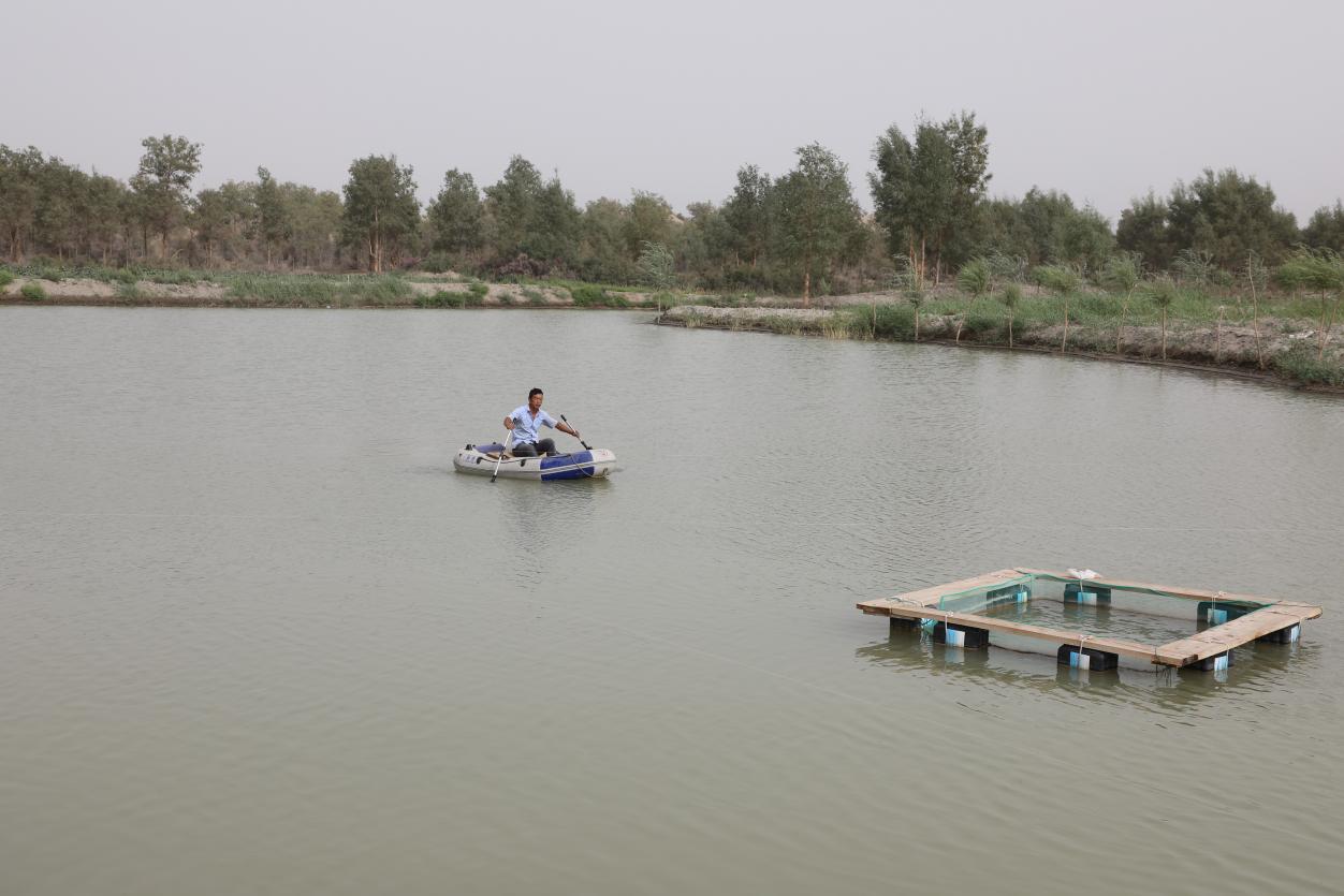 在离连队不远的沙漠地带,有一片天然形成的水域。连队党支部规划打造水产养殖基地,因周围都是胡杨和柳树,连队职工就给这片水域起名为“杨柳湖”。关于这片水域的发展,连队党支部制定了可行性方案,并邀请专业人士亲自指导。