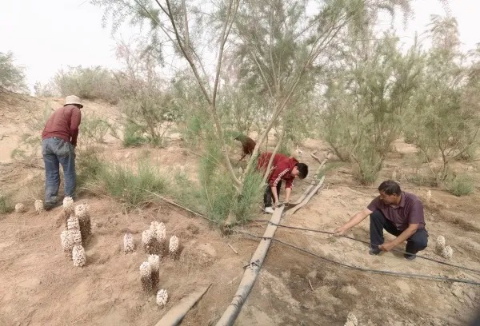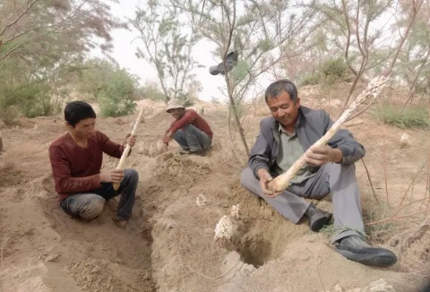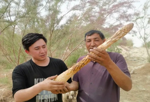 策勒县策勒乡的石榴籽村麦提喀斯木·奥布力卡斯木说:“去年我们通过种植大芸,年收入达到5万元,今年村里的巨菌草试种成功,我打算再承包一些沙地,扩大种植面积,增加收入。”
