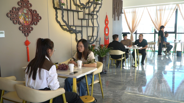 顾客牛丽梅说:“今天我们朋友开的店开业了,我带上我闺蜜过来支持一下她的生意,主要就是在这里可以放松一下心情,聊聊天,喝喝茶。”