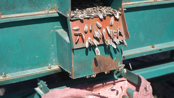 食葵脱粒机采收作业完成后,拉运车辆将脱粒好的食葵籽拉运至晾晒场,进行晾晒、清粮、清选,后期等待出售即可。据了解,西戈壁镇成熟的食葵盘颗粒硕大且均匀,色泽乌黑发亮,品质优良,深受消费者喜爱。