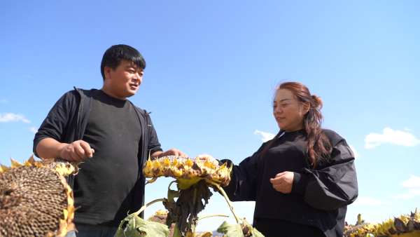 沙湾市裕康种植农民专业合作社社员禹君说:“我们这个晒场挺大的,可以晒个100多吨,晒好以后我们就可以卖掉。还有就是我们这里的食葵又大又好,口感挺好的,目前卖到安徽、河南、甘肃(等地),那里的人们都很喜欢。”
