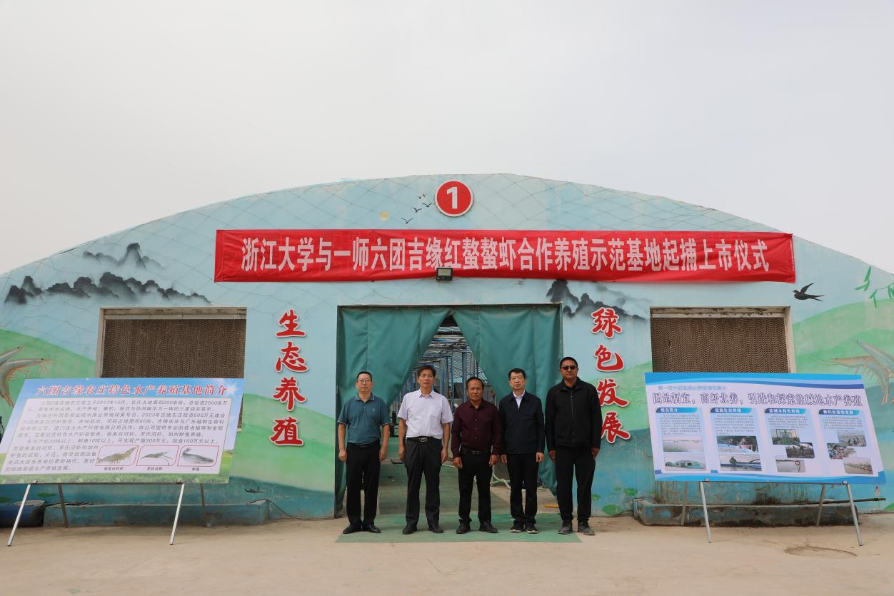 当天12时,浙江大学、六团双城镇在吉缘农庄共同举行浙江大学与一师六团吉缘红螯螯虾合作养殖示范基地起捕上市仪式,并宣布在低浓度盐碱水中养殖红螯螯虾获得成功。