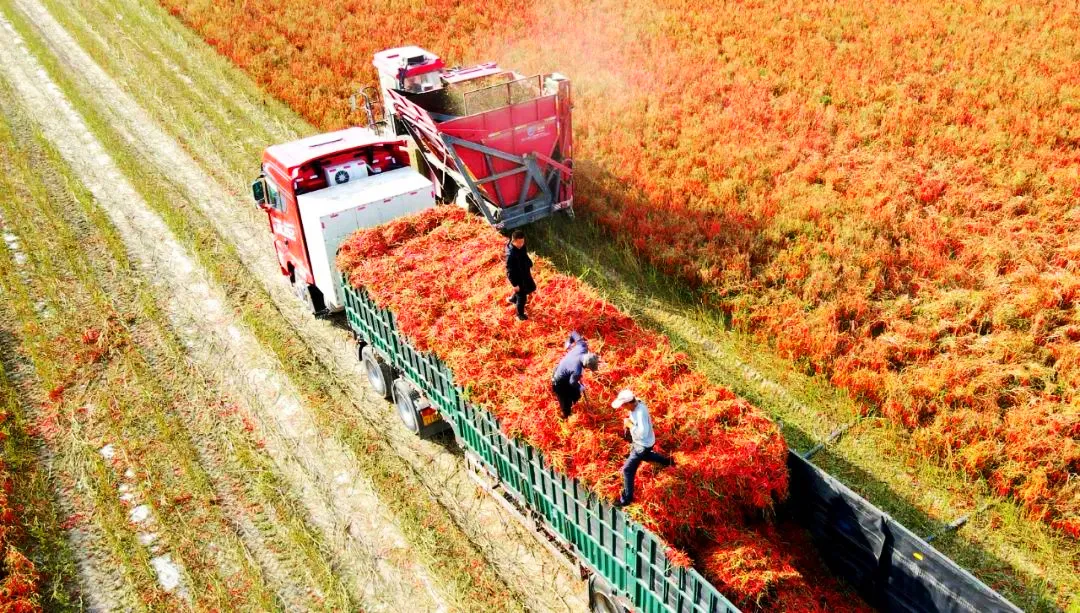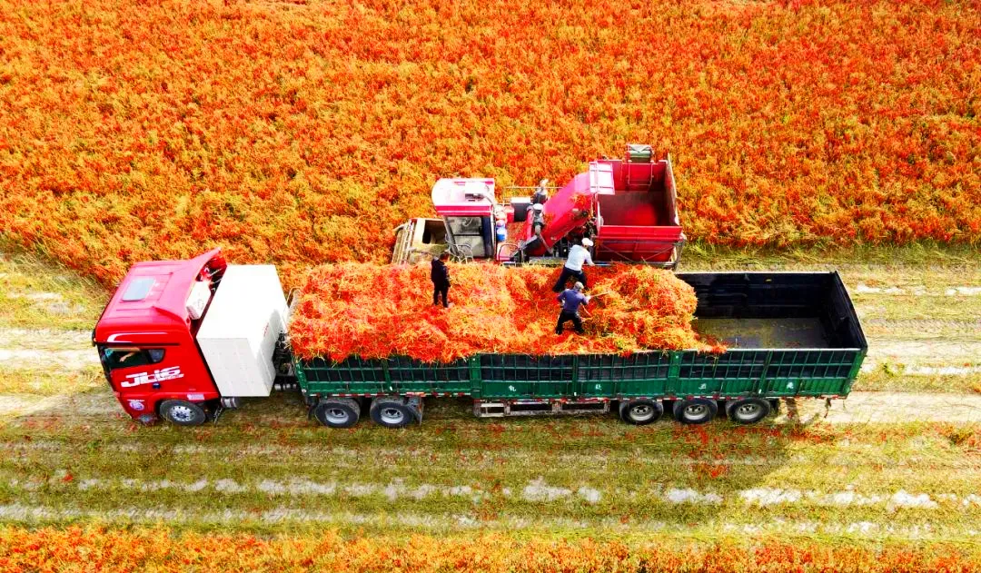 眼下,沙湾市安集海的2.8万亩辣椒进入采收季,农民们抓紧时间进行采摘,确保辣椒的新鲜度和品质,经过采收后的辣椒有的运往全国各地,成为餐桌上的佳肴。它们不仅丰富了人们的味蕾,也为当地经济注入了活力。