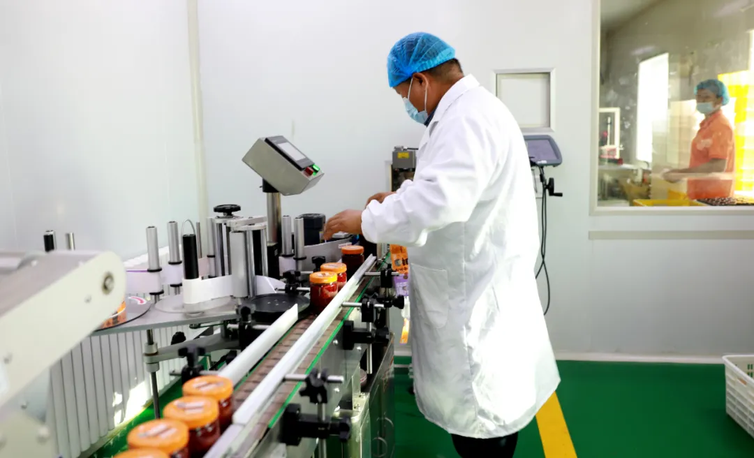 安集海镇辣椒除了传统的晾晒方式之外,椒农们还将辣椒销售往本地的辣椒加工厂,工厂工人将新鲜采摘的辣椒进行分拣、除蒂,随后,再经过清洗、剁碎、拌料、熬制、高温杀菌、装箱打包等多道工序,制作出一瓶瓶色香味俱全的辣椒酱。