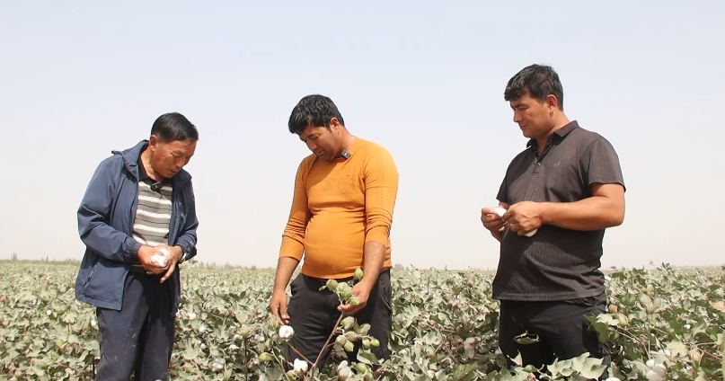 眼下麦盖提县的棉花已陆续吐絮进入采摘期,韩宗树像往常一样前往棉花地,查看棉花长势,并叮嘱在地里忙活的村民买买提吐拉·苏来满一定要按时打脱叶剂,收掉滴灌带,这样才能保证棉花品质、卖出好价钱。看着村民买买提吐拉·苏来满家的棉花地丰收在望,韩宗树心里也乐开了花。