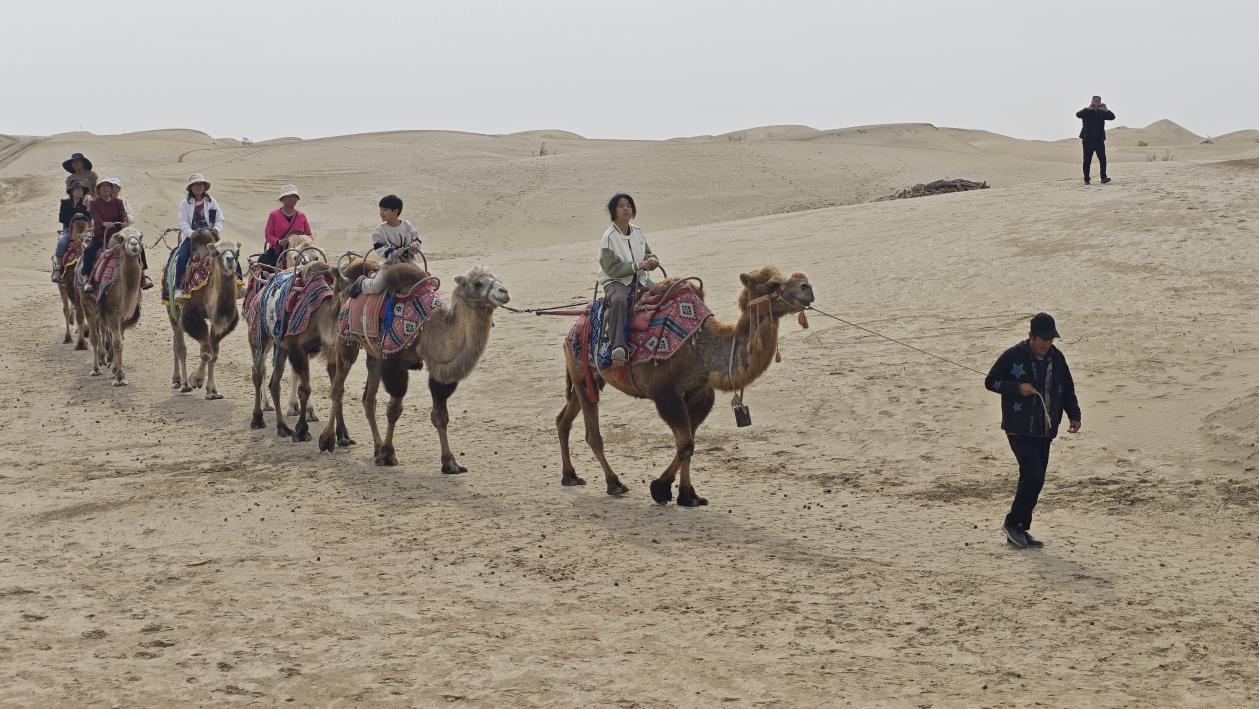 游客兰熙告诉记者:“我是第一次来沙漠,太壮观了,沙子超级软,我还骑了骆驼,骆驼超级大,很温顺,驼峰肉嘟嘟的,玩得很开心。”