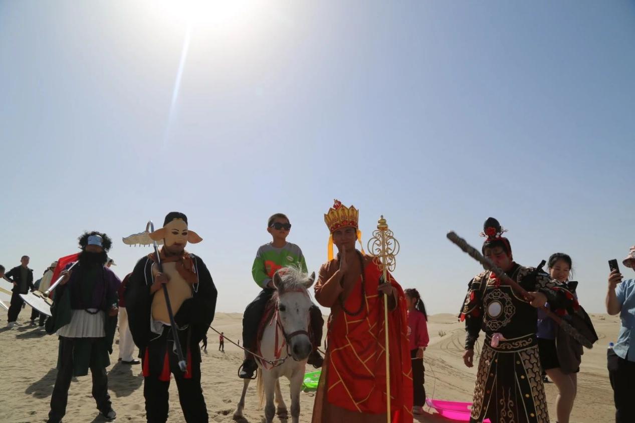 沙漠之门景区推出“特别西游文化嘉年华”活动,每天上午10点至晚上9点半,精彩不断。游客可以参与游戏、沙漠寻宝等活动,欣赏唐僧师徒巡游、乐队表演、汉服和快闪等精彩节目,游客穿cosplay服装入场还可免门票。