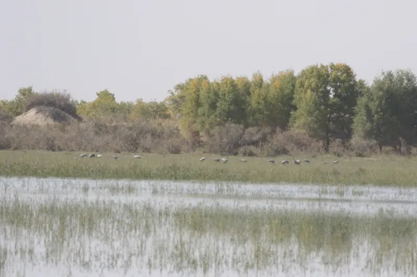 近年来,地区持续加大生态保护力度,利用引洪灌溉时机对湿地公园进行生态补水。这一举措不仅为湿地植被提供了良好的生长环境,更是吸引了越来越多的越冬候鸟来此“安家”。湿地生态环境得到了极大改善,丰茂的水草和丰富的鱼虾资源让这里成为了候鸟的天堂,飞抵墨玉县、民丰县等地栖息越冬的候鸟数量逐年增多,呈现出人与自然和谐共生的美景。