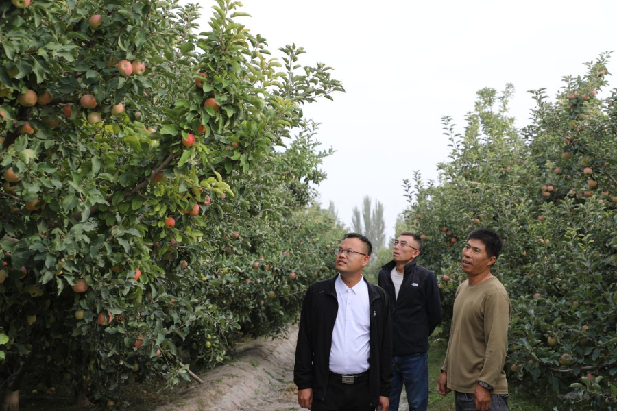 六团双城镇党委常委、副团长欧阳德会介绍,十多年来,随着农业产业的不断发展,苹果种植已成为该团镇的特色产业之一。如今,越来越多的果农通过种植苹果走上了致富路,同时也带动了周边相关产业发展,为连队振兴注入了新活力。