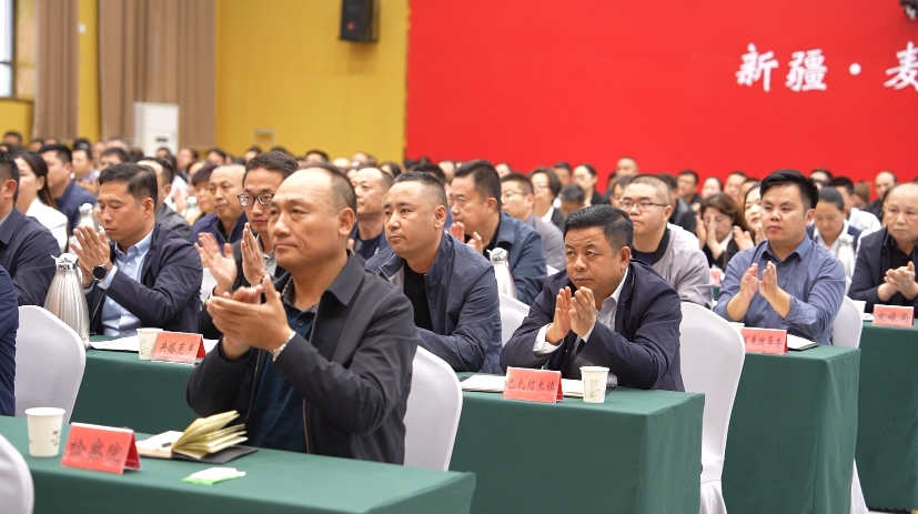 麦盖提县四套班子领导,检法两院、工业园区管委会、就业局主要领导,县直各单位(含二级单位)主要领导,各乡镇(场)党委书记,人大代表,政协委员代表,“两企三新”代表,日照市对口支援麦盖提县工作指挥部干部人才参加宣讲报告会。(米日古·多力昆 实习记者 热依来·肉斯坦木)