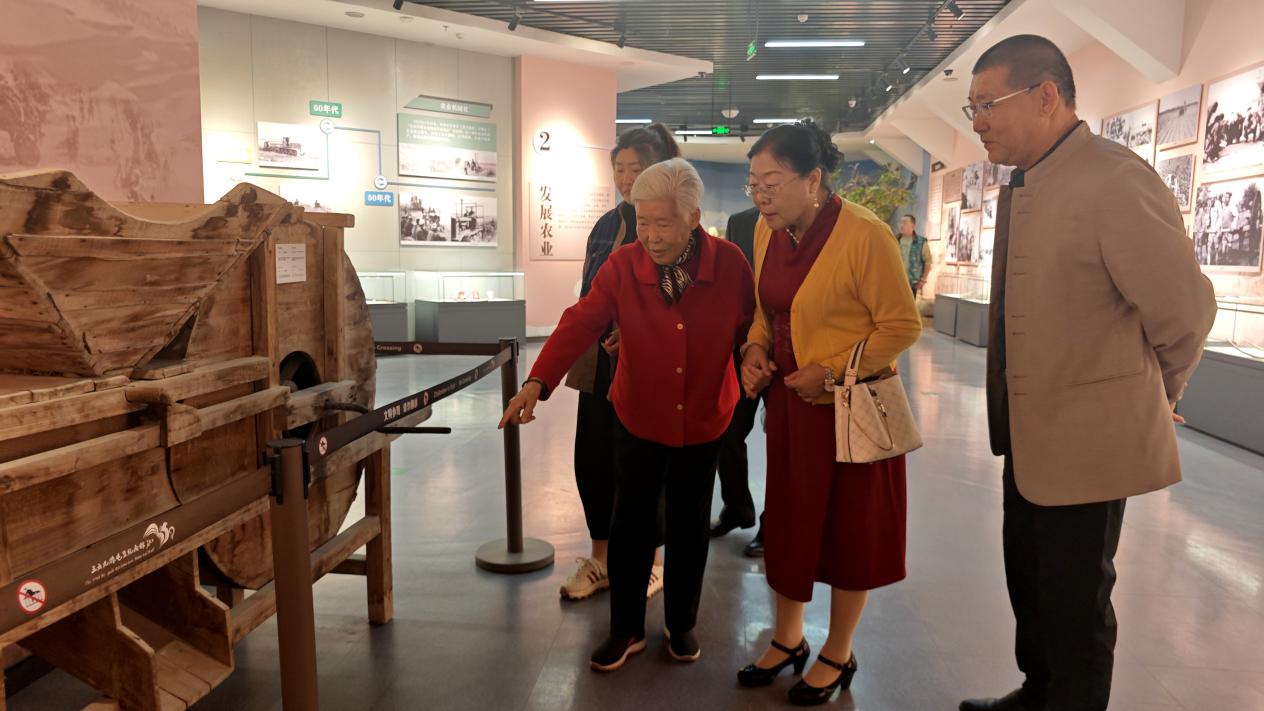 十二团退休职工王福存(左二)在家人的陪伴下,走进三五九旅屯垦纪念馆,重温那些曾经的工作和生活场景。王芳芳 摄