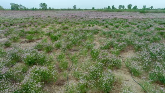 在新疆巴音郭楞蒙古自治州尉犁县南侧,塔里木河奔涌不息,旁边是一望无际的塔克拉玛干沙漠。在塔里木河及其支流两岸的荒漠沙地、盐碱地上,生长着大片大片的野生罗布麻,面积约为160万亩。