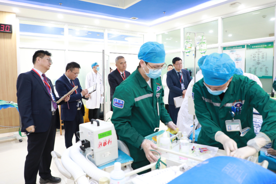 专家组进入第一师医院急诊科实地查看,观摩多发伤救治演练。胡珺摄