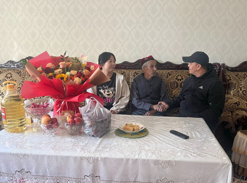 10月10日,沙湾市书香街道沙城路社区工作人员和志愿者准备臊子面、鲜花和蛋糕送给老人。戎梓媛摄